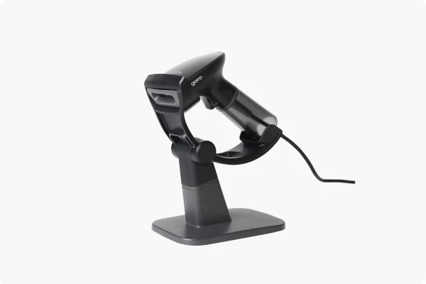 A plug-and-play QR/barcode scanner supports 1D/2D barcodes.