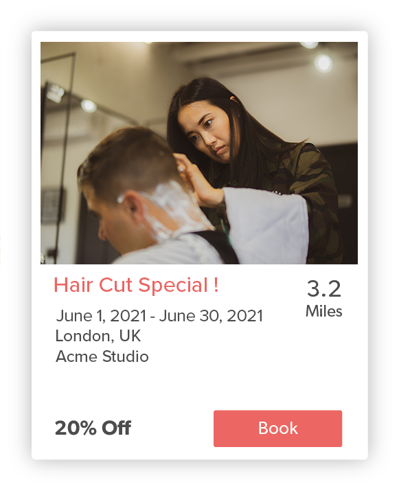 Promote your specials, sales, and discounts with our Daily Deals to bring in more business. By adding a Daily Deal, you are 4 times more likely to be booked by new customers. Simply select one of our hundreds of photos, add a title & description, and customers can book your services immediately.