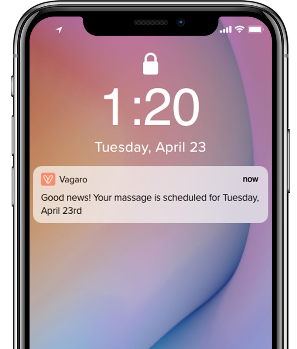 Vagaro sends you and your clients email, text, or push notifications. Be in the know when someone books or reschedules with you, and make sure your clients never miss another massage.