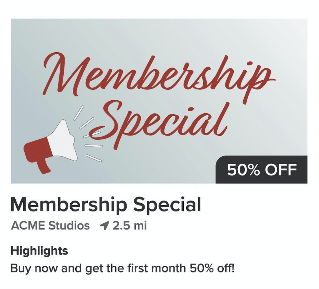 Encourage future clients to buy a membership or package by offering free trials or the first month at a discount. Seal the deal by offering an exclusive promo code or Daily Deal for this membership discount.