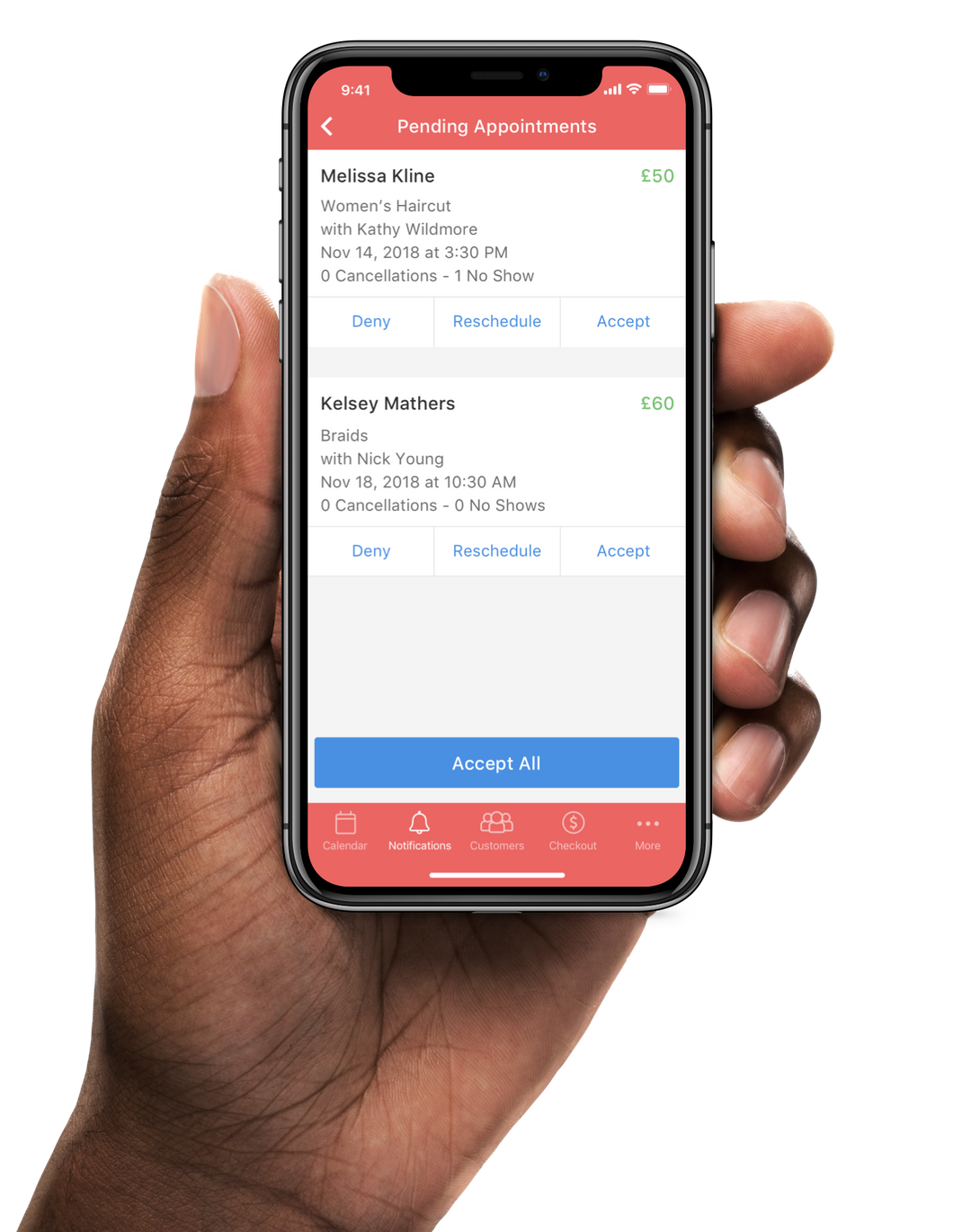Customers can be added to a waitlist when your schedule is fully booked. If a customer cancels, you can manually select a customer from the waitlist or we'll automatically notify your waitlist customers of the availability.