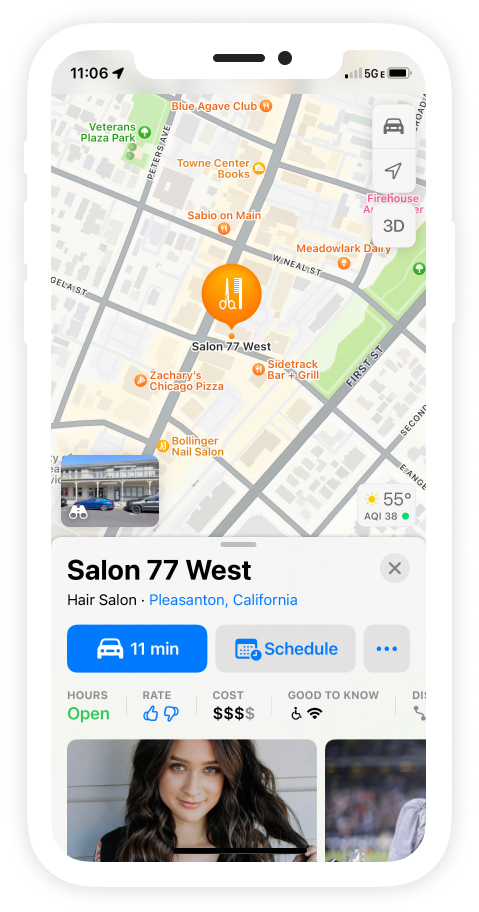 Expand your reach and get booked easily when customers search your business on Apple Maps with the "Schedule" button.