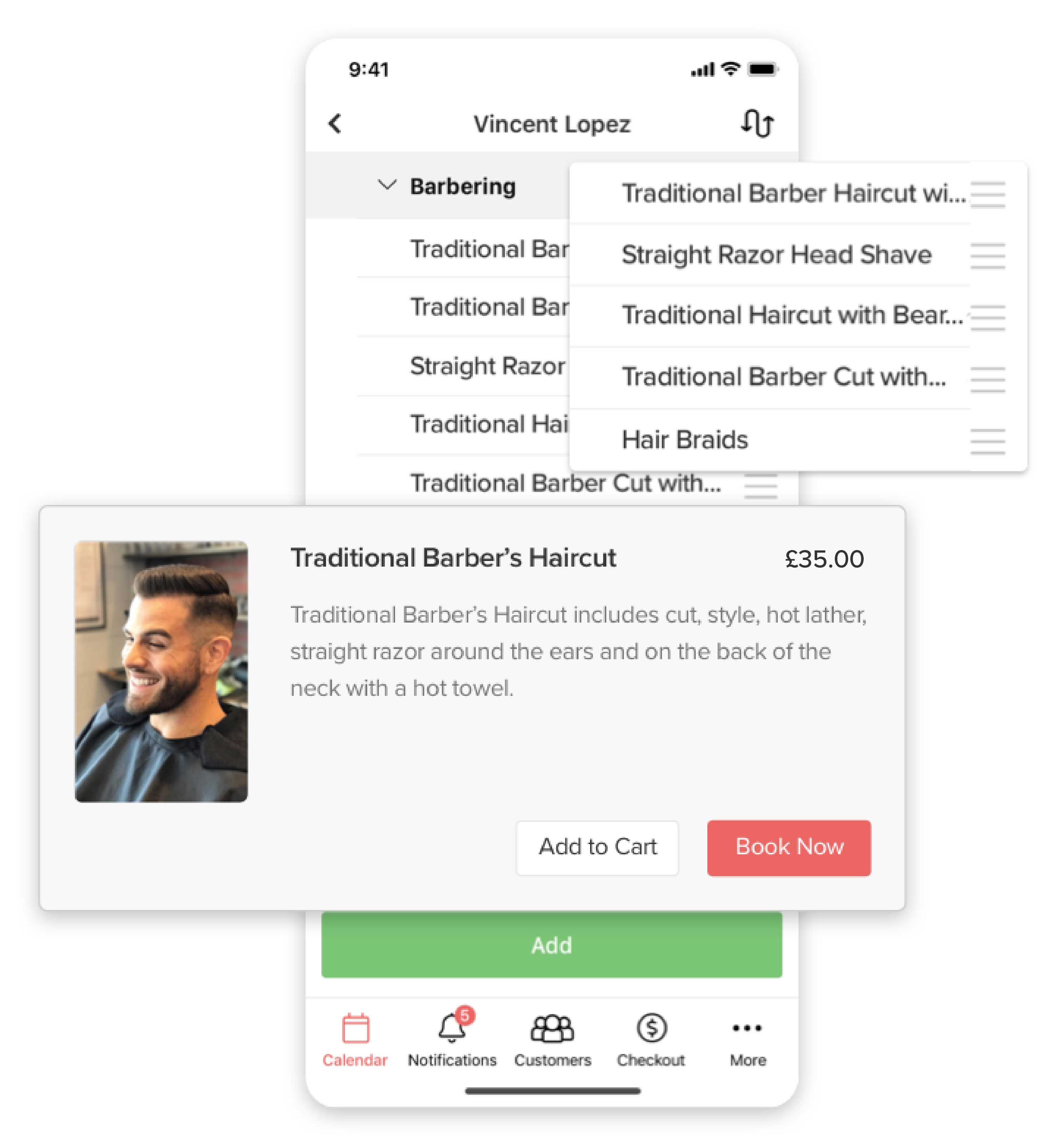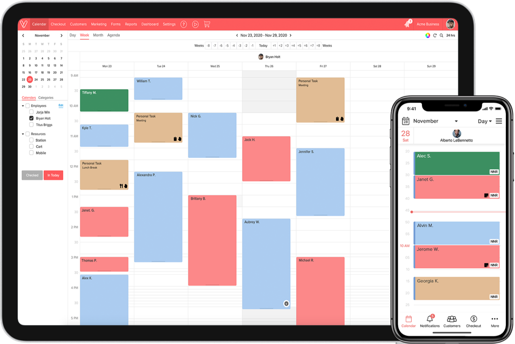 Get notified of booked, rescheduled, or cancelled appointments whether the change was done by your customer or someone else at your business. Our notification screen keeps you updated in real time.