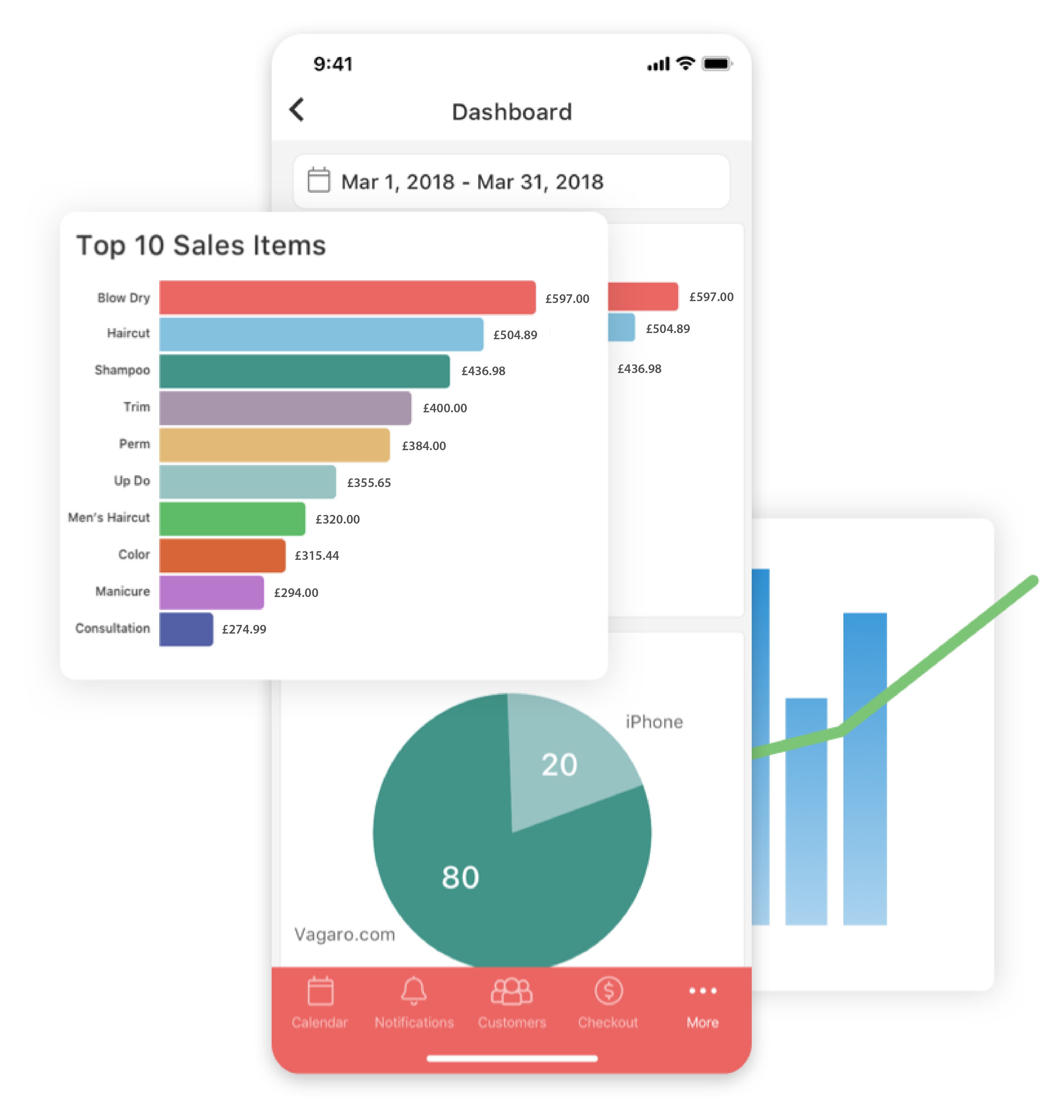 Sell services, products, gift certificates, packages and memberships from your phone, tablet or computer. Accept credit card payments, Apple Pay, Google Pay and print or email receipts.